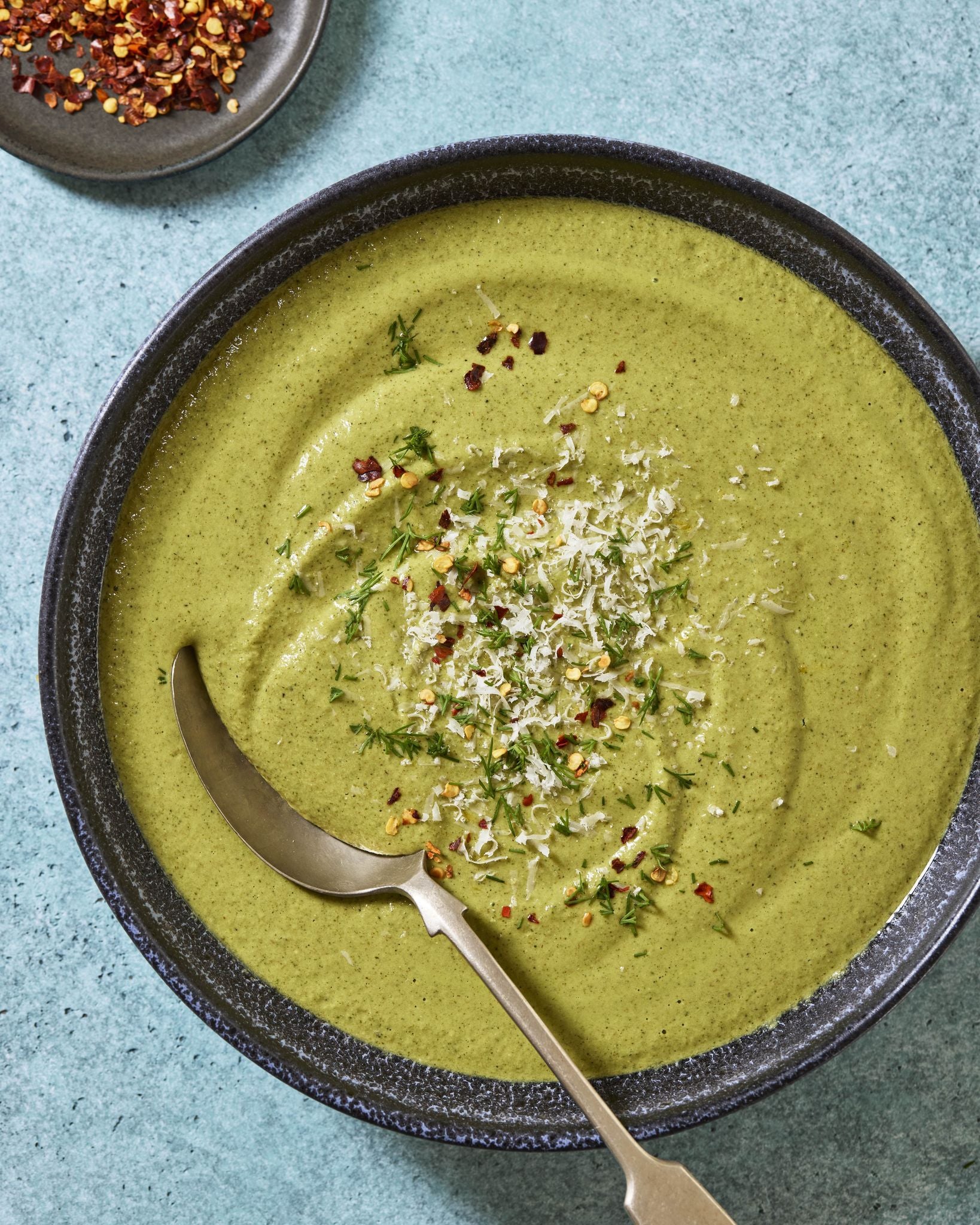 “Found my new favorite soup, make it a couple of times a month, big batch, finish it with creme fraiche and fresh mint, delicious 😋😋