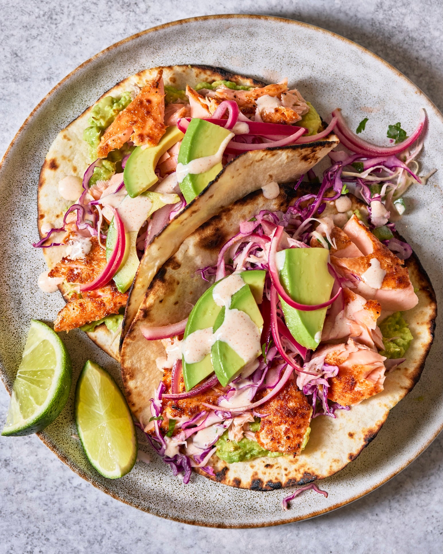 - Chili Lime Salmon Tacos: Bold, fresh flavor with the protein to back it up.