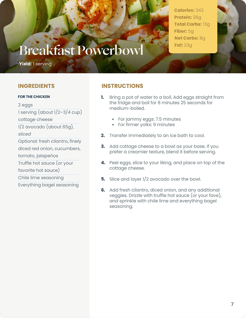 - Breakfast Power Bowl: Fuel your mornings with balanced carbs, protein, and fiber.