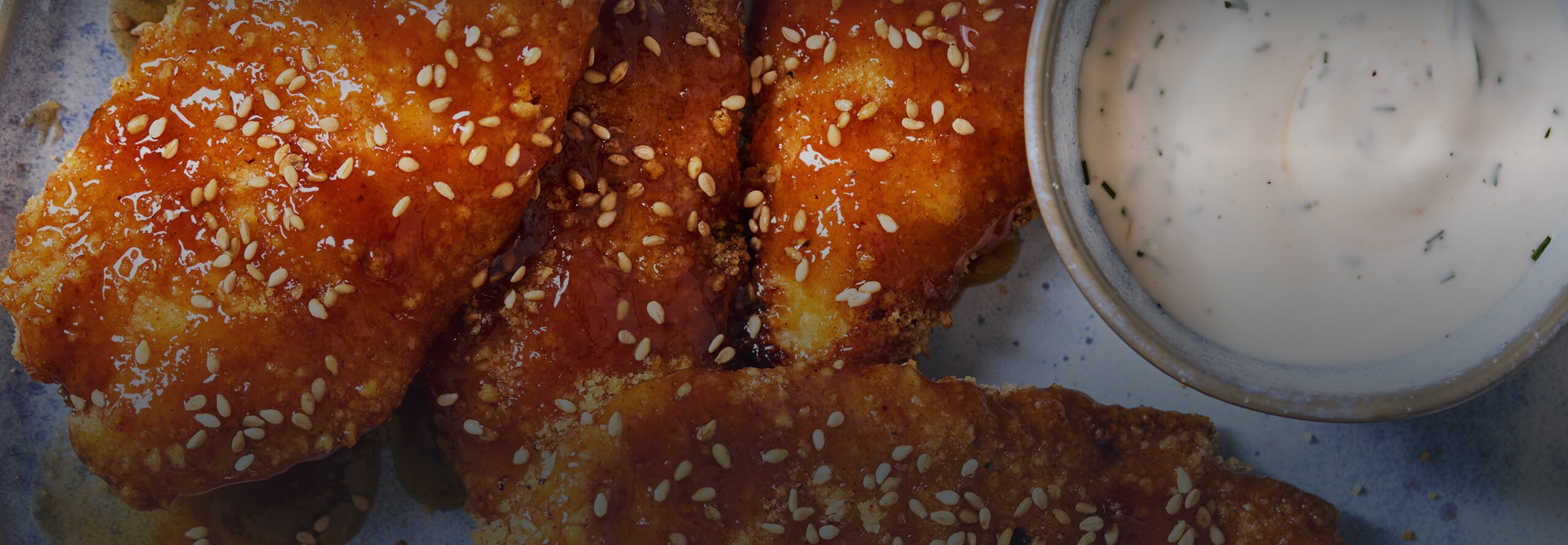 5. Toss the cooked tenders in the warm sauce or drizzle on top. Garnish with sesame seeds and serve hot with your favorite dip.
